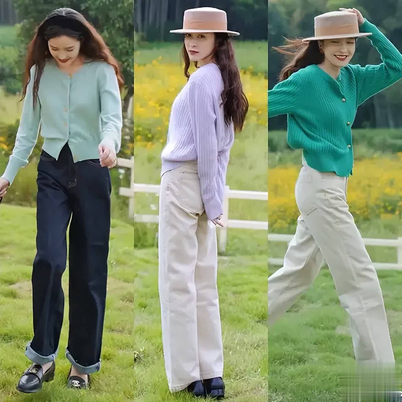 正常情况下,就算你穿的小香风外套,下半身的裤子,裤脚尽量不要太长,比如下面这条牛仔直筒阔腿裤,穿在身上之后就有一种拖地的感觉,如果你身材比例没有那么好的情况下,穿这么长的裤子其实并不好看。