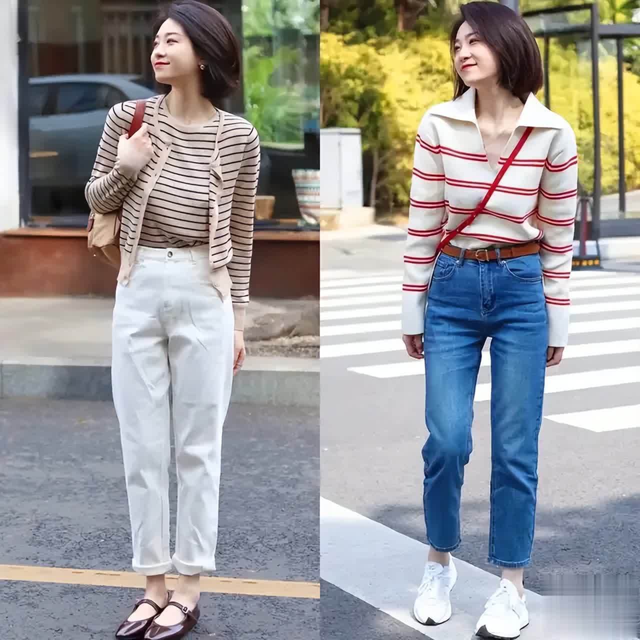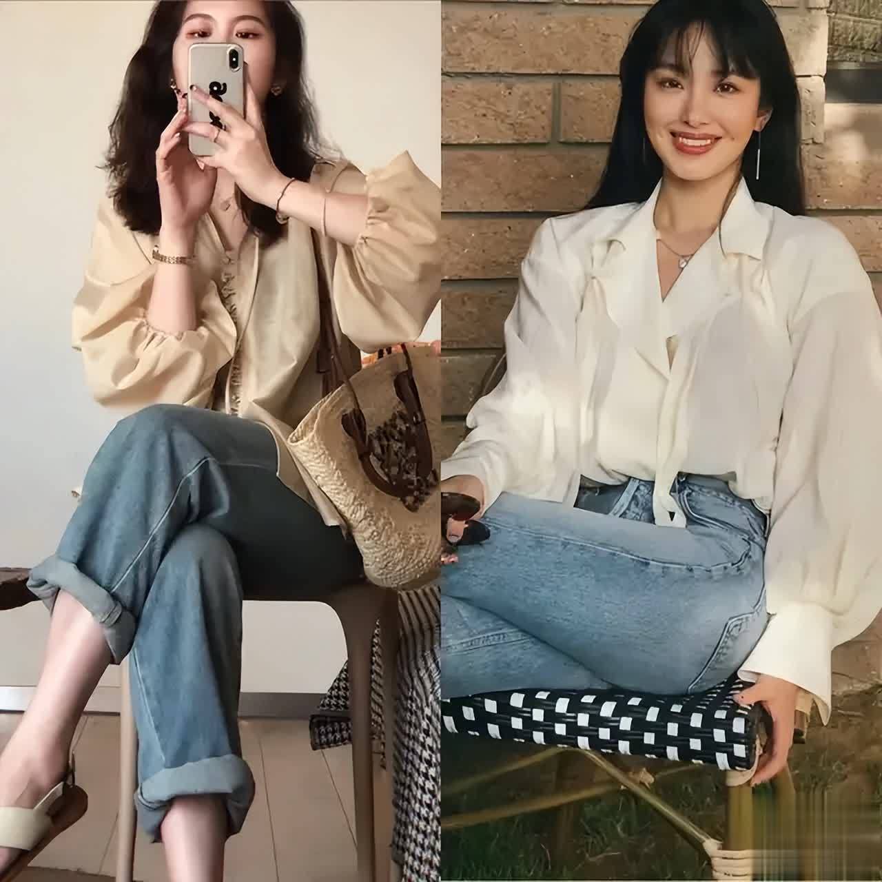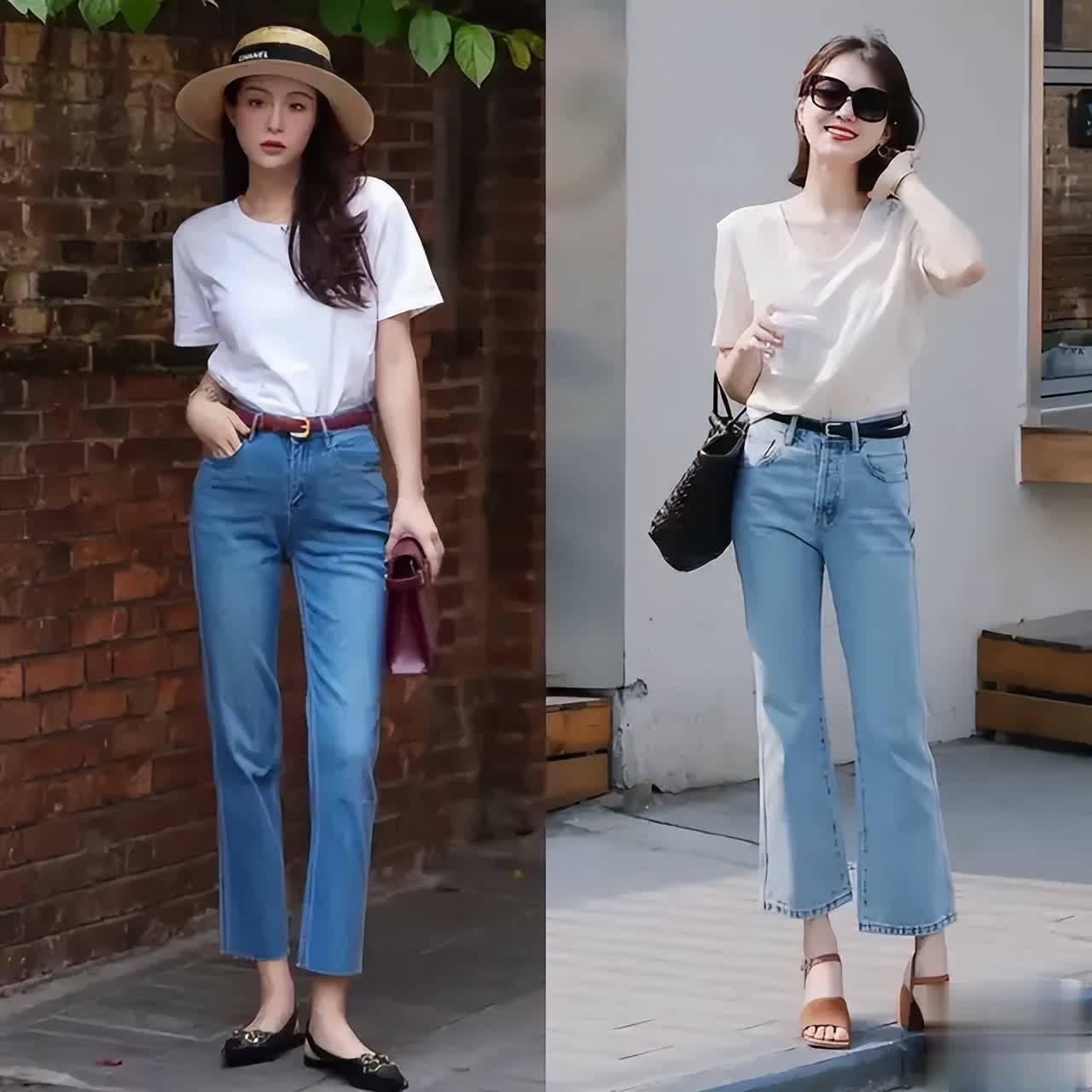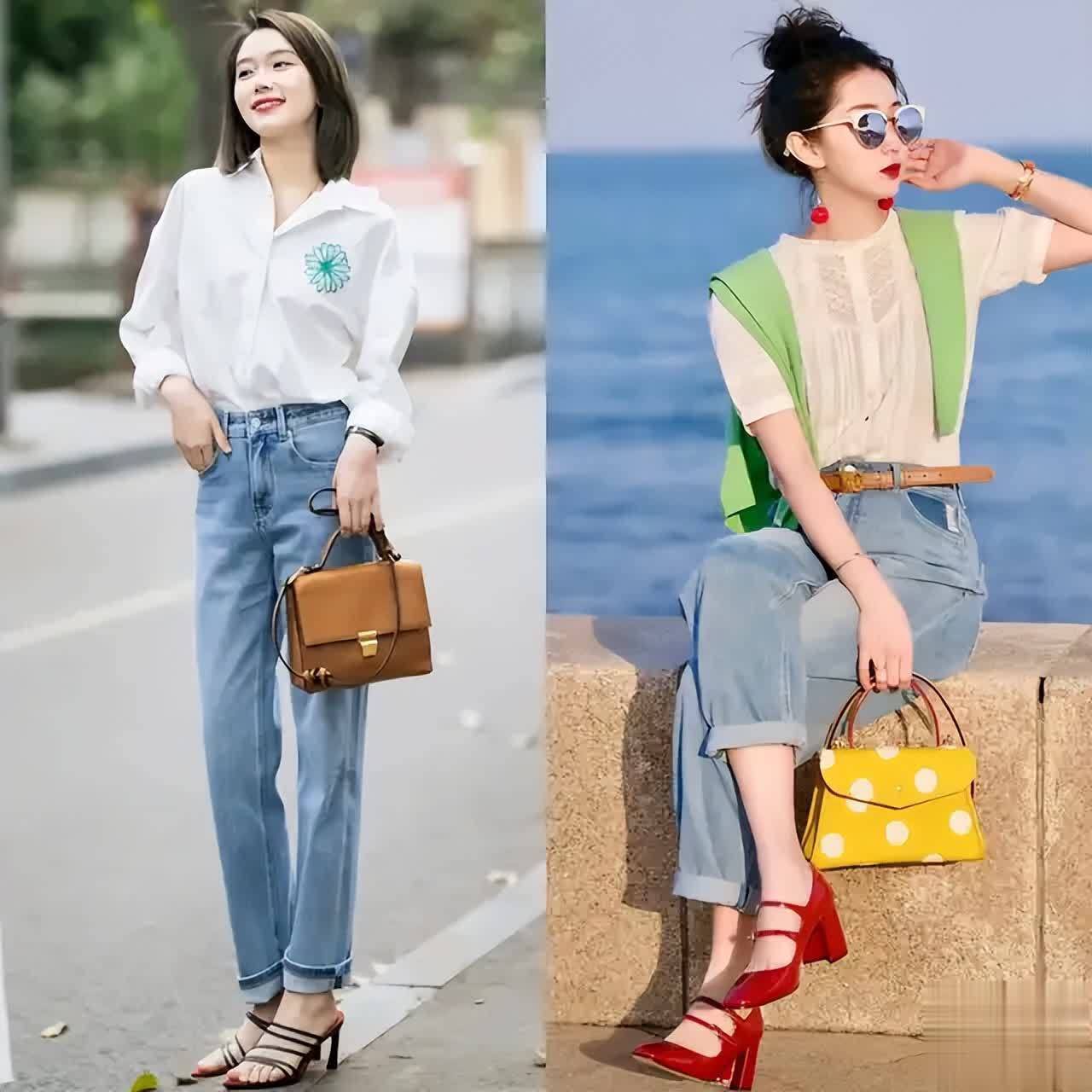 其实有的时候咱们普通素人的穿搭也一点不输女明星,例如下面这2套穿衣打扮就很适合当下的秋季,用一件白色的衬衫搭配上一条牛仔裤,脚上穿着一双黑色的高跟凉鞋,能够使得穿搭者简约干净